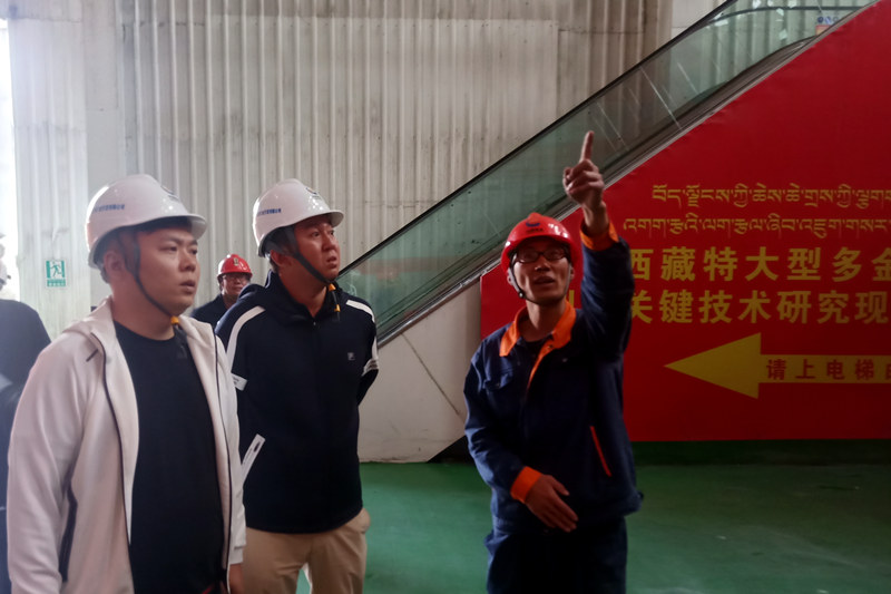 許總一行,首先在華泰龍公司工程技術人員的陪同下來到選礦廠。繞過彎彎曲曲的山路,從綠意盎然的山腳到白雪皚皚的山頂,這座日處理礦量40000噸的選礦廠在海拔5300米的礦業(yè)工地顯得格外令人矚目。許總在參觀考察該選廠各工段工藝流程、設備運轉實況的同時,也與選廠技術工作人員進行了深入的交流探討,聽完對方的介紹,許總高度贊揚了這座高原選廠在華泰龍員工手中所創(chuàng)造的生產奇跡,此次交流也為開元礦業(yè)集團礦山板塊下一步的探、采、選業(yè)務發(fā)展獲取了科學先進的建設經驗。